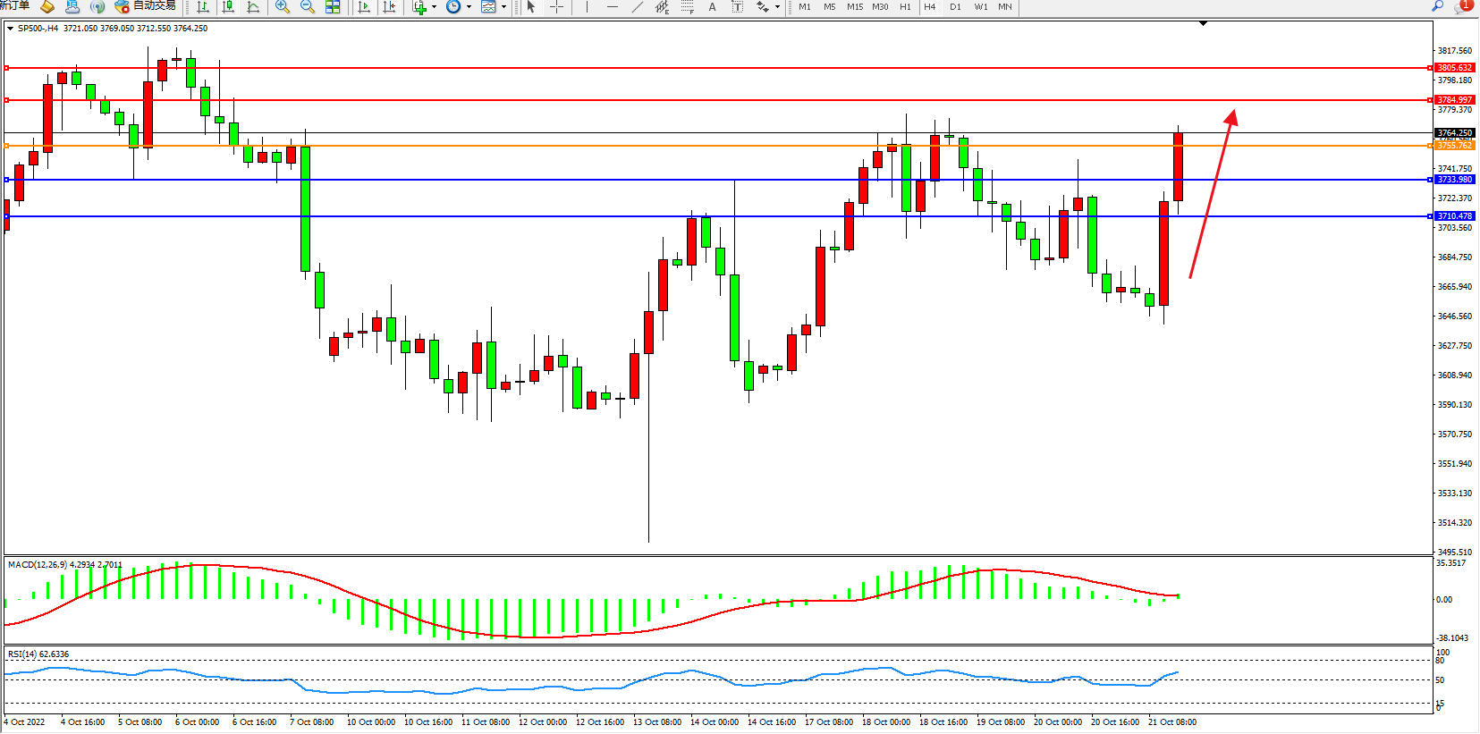标普SP500——4小时K线图显示: