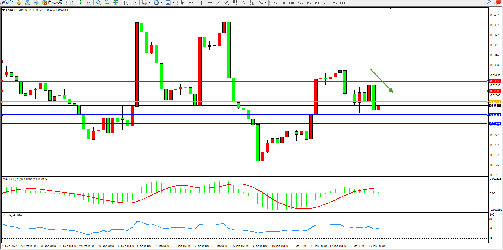 美元瑞郎USDCHF——4小时K线图显示: