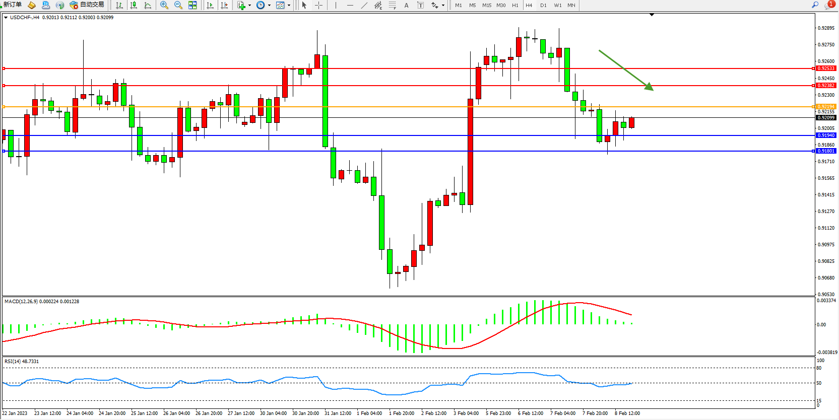 交易策略:0.92194下方看跌,目标0.91940、0.91801