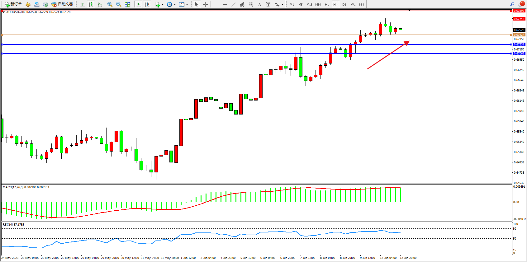 阻力位:0.67742 0.67896